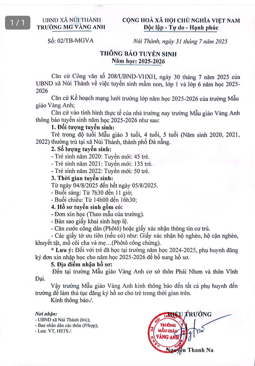 Thông báo tuyển sinh năm học 2025 - 2026
